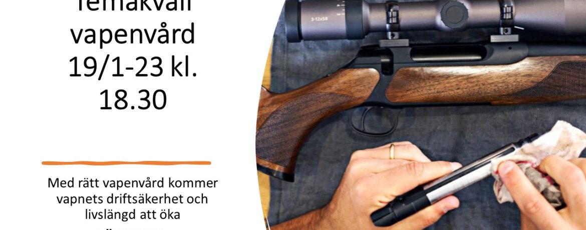 Välkommen till en temakväll om vapenvård. Kvällen kommer innehålla olika sätt att utföra vapenvård, vilka möjligheter finns och vad behöver man tänka på för att få ett så bra resultat som möjligt. Vi kommer också diskutera olika kamhöjningar och andra infallsvinklar som har med funktion att göra. Därtill kommer vi prata om olika optiker, vilket […]